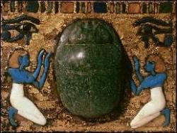 Déifié sous le nom de Kheper ou Khepri, il devint donc l’incarnation du soleil levant, et le principe du changement. C’est logiquement qu’il était mis à la place du cœur des momies. Pacemaker avant la lettre, il aidait la conscience de la momie lors du jugement avant le grand passage.