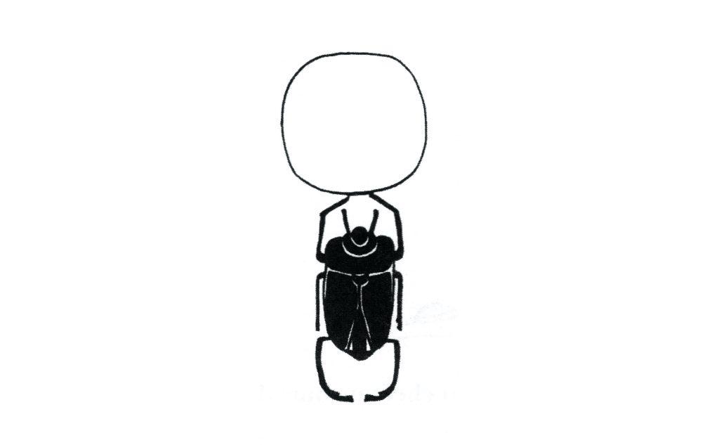 Observer les bousiers rouler leur boule d’excrément est un spectacle fascinant : les égyptiens en firent les scarabées sacrés, et les textes hiéroglyphiques nous rapportent leur histoire. Ces insectes commençaient leur cycle en entraînant la terre, c’est à dire leur boule, d’Orient en Occident, puis l’enfouissaient pour une durée de 28 jours.